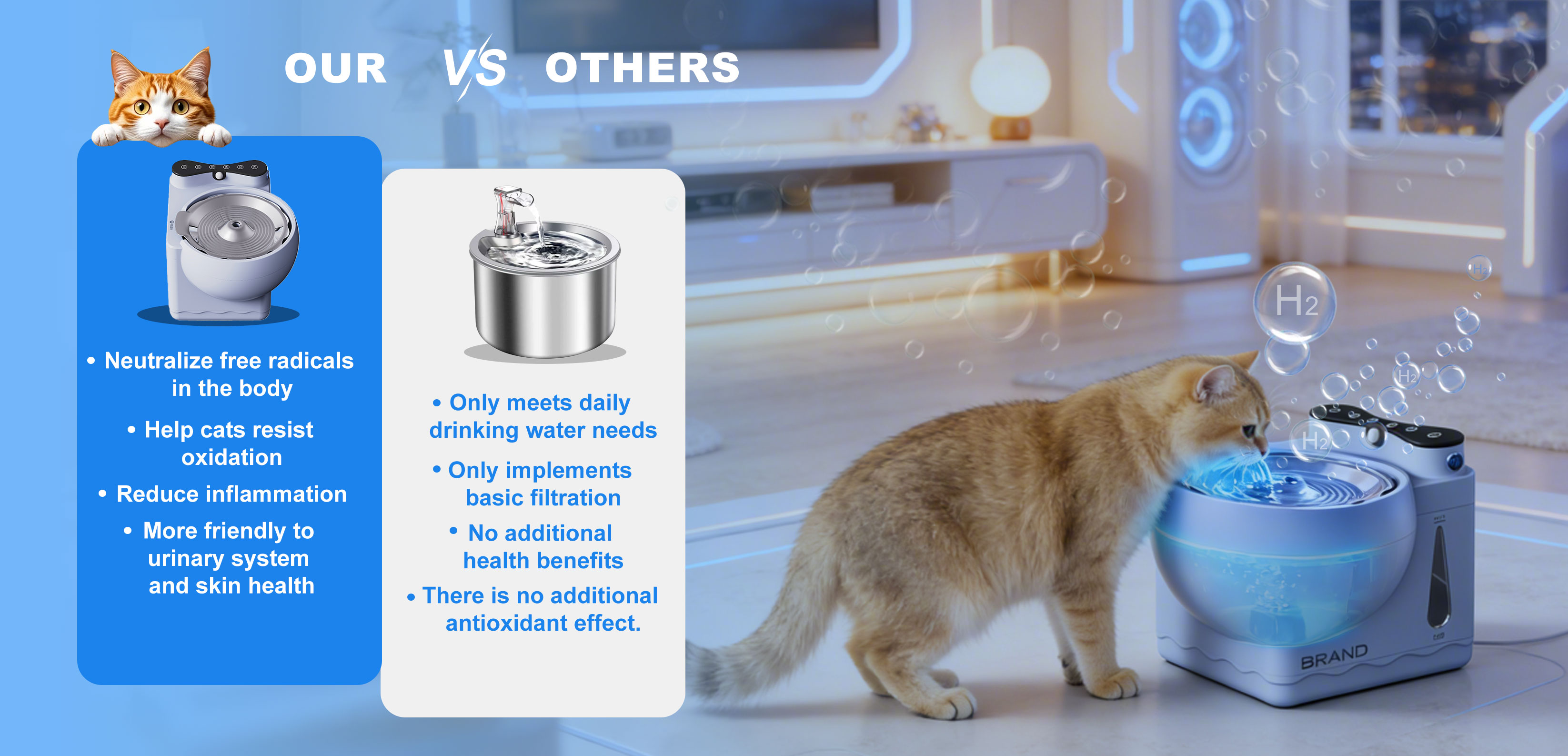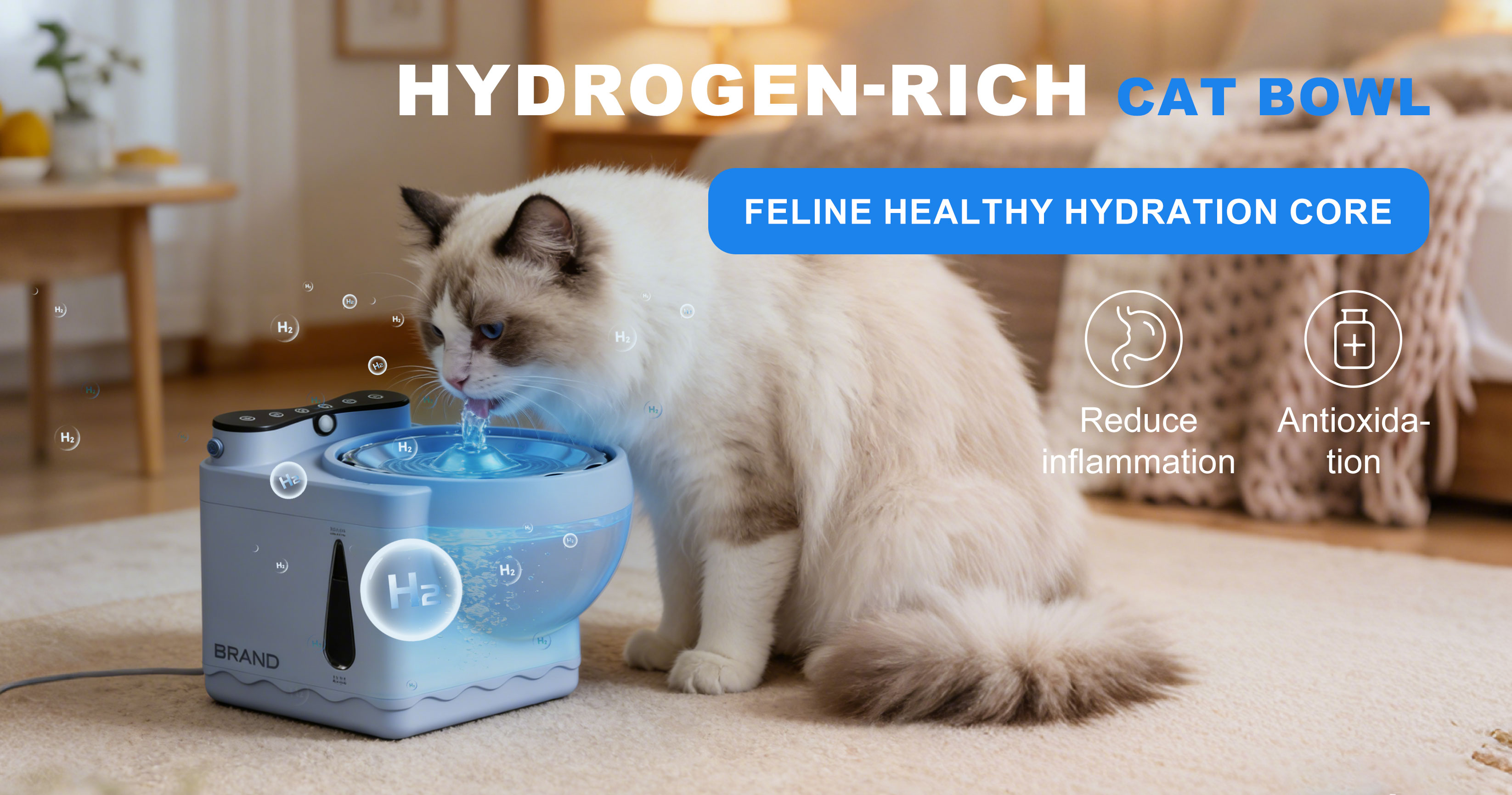Hydrogen-Rich Cat Water Dispenser – Food-Grade Stainless Steel, Antioxidant Pet Fountain for Urinary & Immune Health