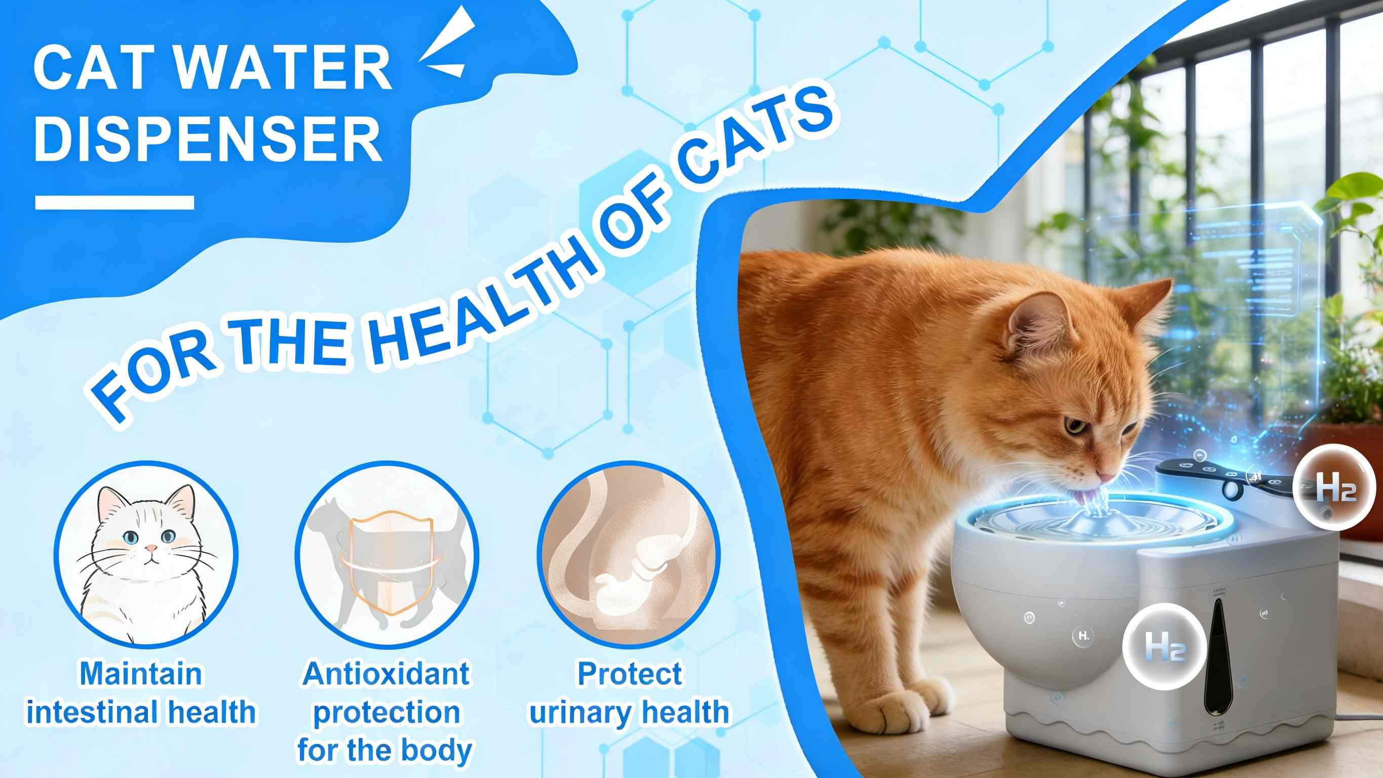 Hydrogen-Rich Cat Water Dispenser – Food-Grade Stainless Steel, Antioxidant Pet Fountain for Urinary & Immune Health Base Specification The core function of hydrogen-rich water (compared to traditional water dispensers) Our Product Ordinary Water Fountain Neutralize free radicals in the body Only meets daily drinking water n1
