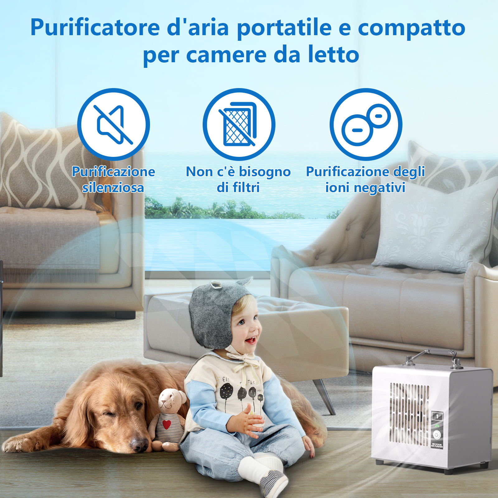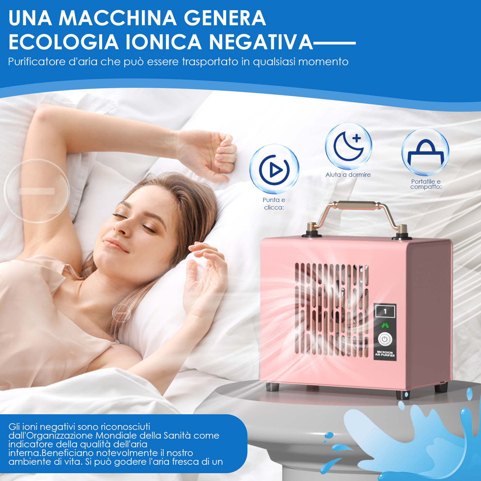 Compact, type-C powered air purifier with negative ion technology to refresh air, reduce odors and improve your breathing environment. Ideal for home, office, car and travel use. No filter needed, easy and convenient.